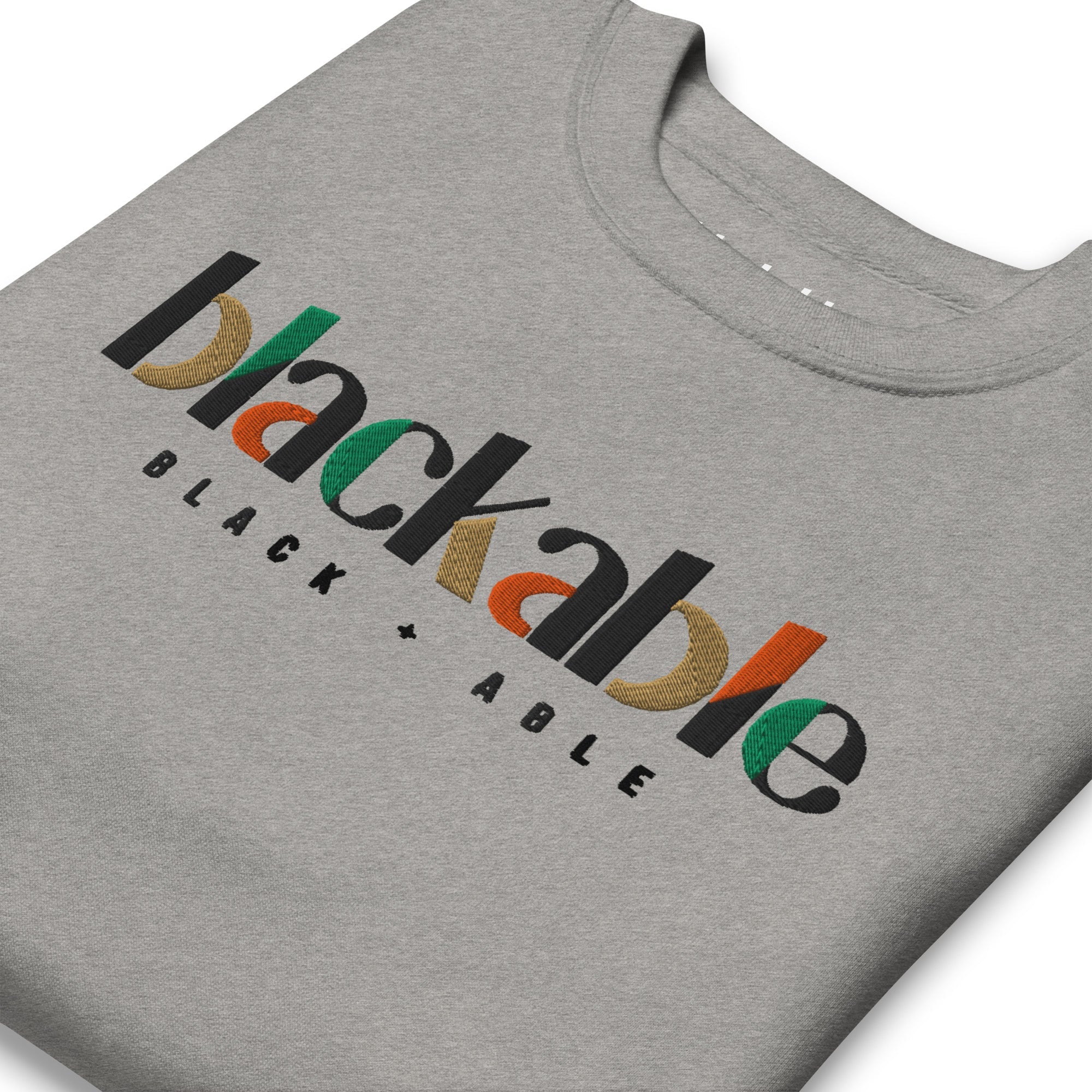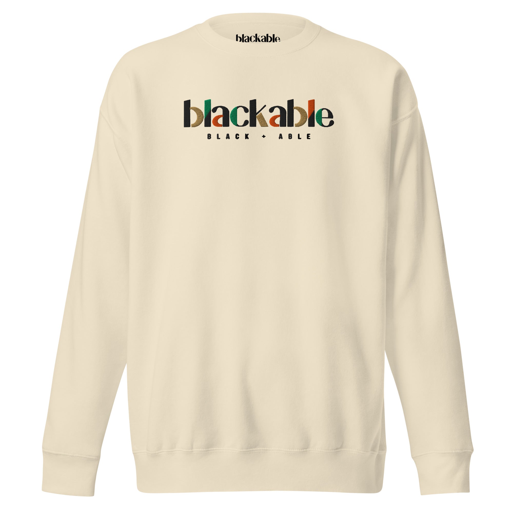 Where statement meets sophistication. This Signature Collection Sweatshirt features our iconic multicolor embroidered Blackable logo—stitched in black, green, orange and gold—boldly displayed across the chest. Designed for those who live loud, move with purpose and wear their truth with pride. Premium fleece meets standout detail, making this sweatshirt a must-have in every rotation.